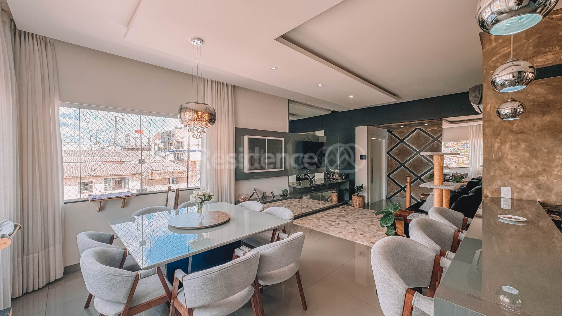 Entre os diferenciais estão cozinha gourmet com armários planejados, forro em gesso, hidrômetro individual, churrasqueira e ambientes parcialmente mobiliados, proporcionando praticidade para quem busca um imóvel pronto para morar.